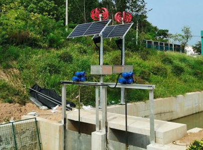 由太陽能光伏板和小型風力發(fā)電機為蓄能電池組充電,電池組有BMS電池管理軟件管控,為永磁無刷直流電機的各類驅(qū)動裝置供電,同時為視頻監(jiān)控,壓力、流量、液位傳感器,照明等供電